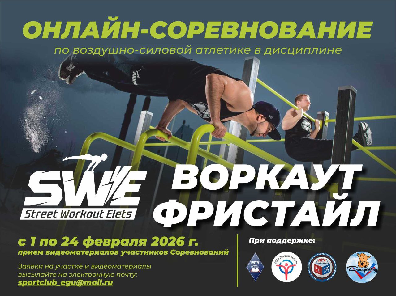 С 1 по 24 февраля 2026 г. онлайн-соревнование по воздушно-силовой атлетике в дисциплине «Воркаут фристайл»